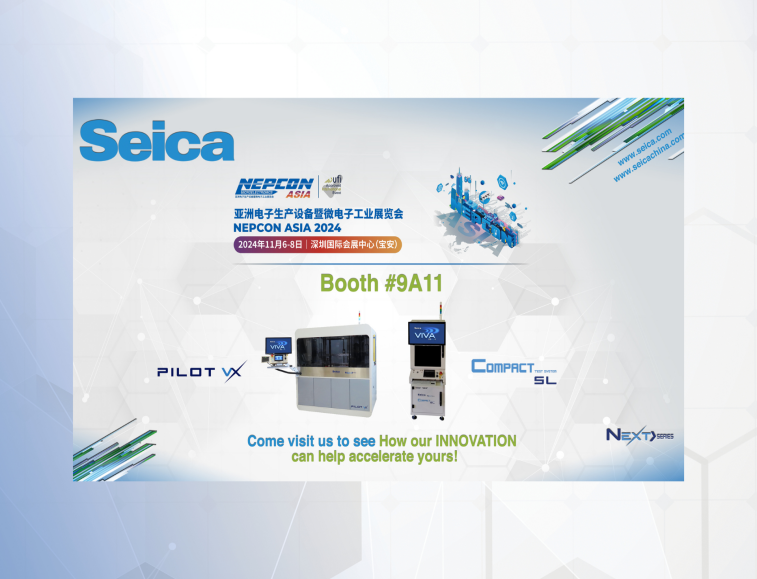 Seica中國 誠邀您參加 2024Nepcon Asia 展會,這一展會在電子制造行業(yè)頗具影響力。該展會將于 2024年11月6-8日 在 深圳國際會展中心(寶安) 舉辦。 在 9A11 展位上,Seica將展示最新解決方案,包括測試速度快、性能...
